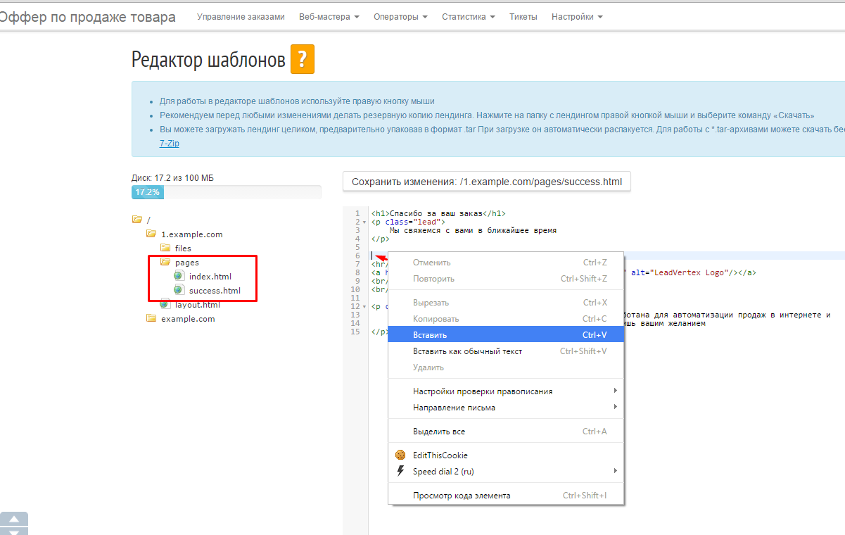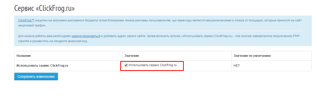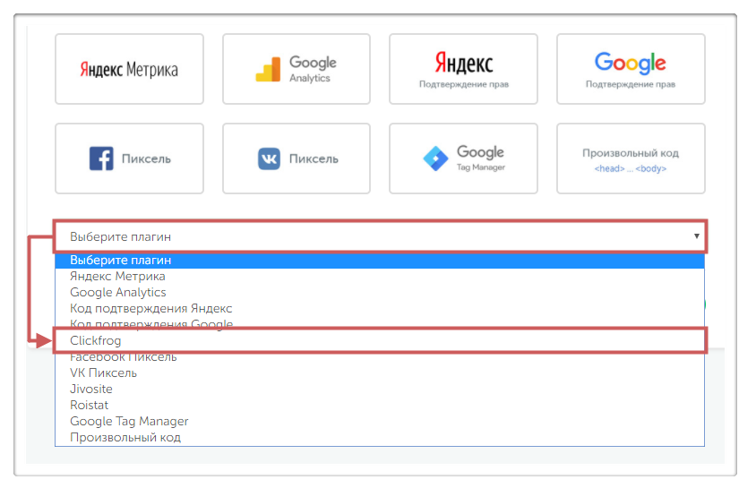 В который нужно вставить JavaScritp код Clickfrog из вашего кабинета, и нажать "Сохранить"