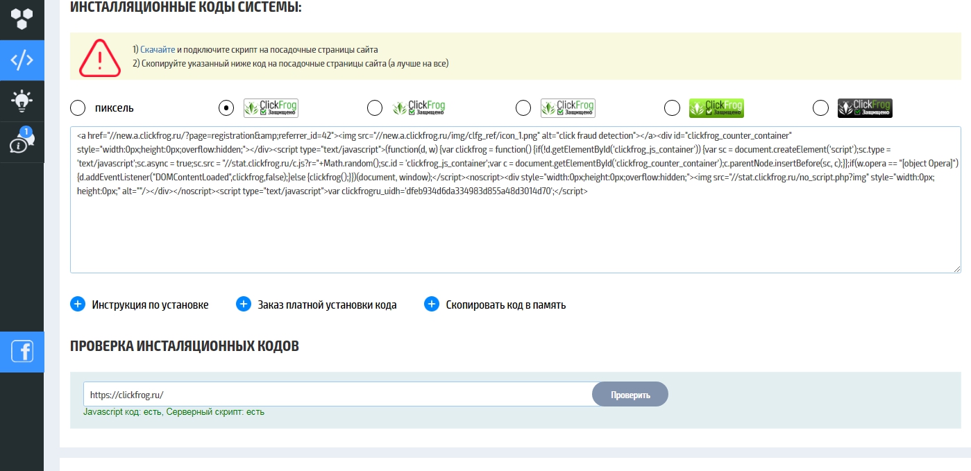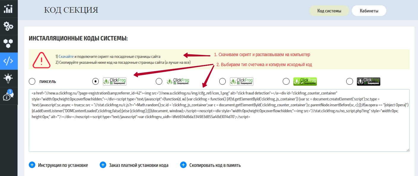 Для работы с Clickfrog необходимо устновить 2 кода: