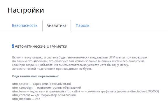 При этом все переходы на страницы вашего сайта будут помечаться меткой utm_source, убедитесь что ваш сайт поддерживает динамические метки. Если название параметра будет отлично от utm_source, кампания будет остановлена автоматически.